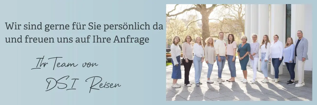 Sie möchten eine persönliche Beratung? Dann schreiben Sie uns eine E-Mail an reiseanfragen@dsi-reisen.de oder rufen Sie uns an.